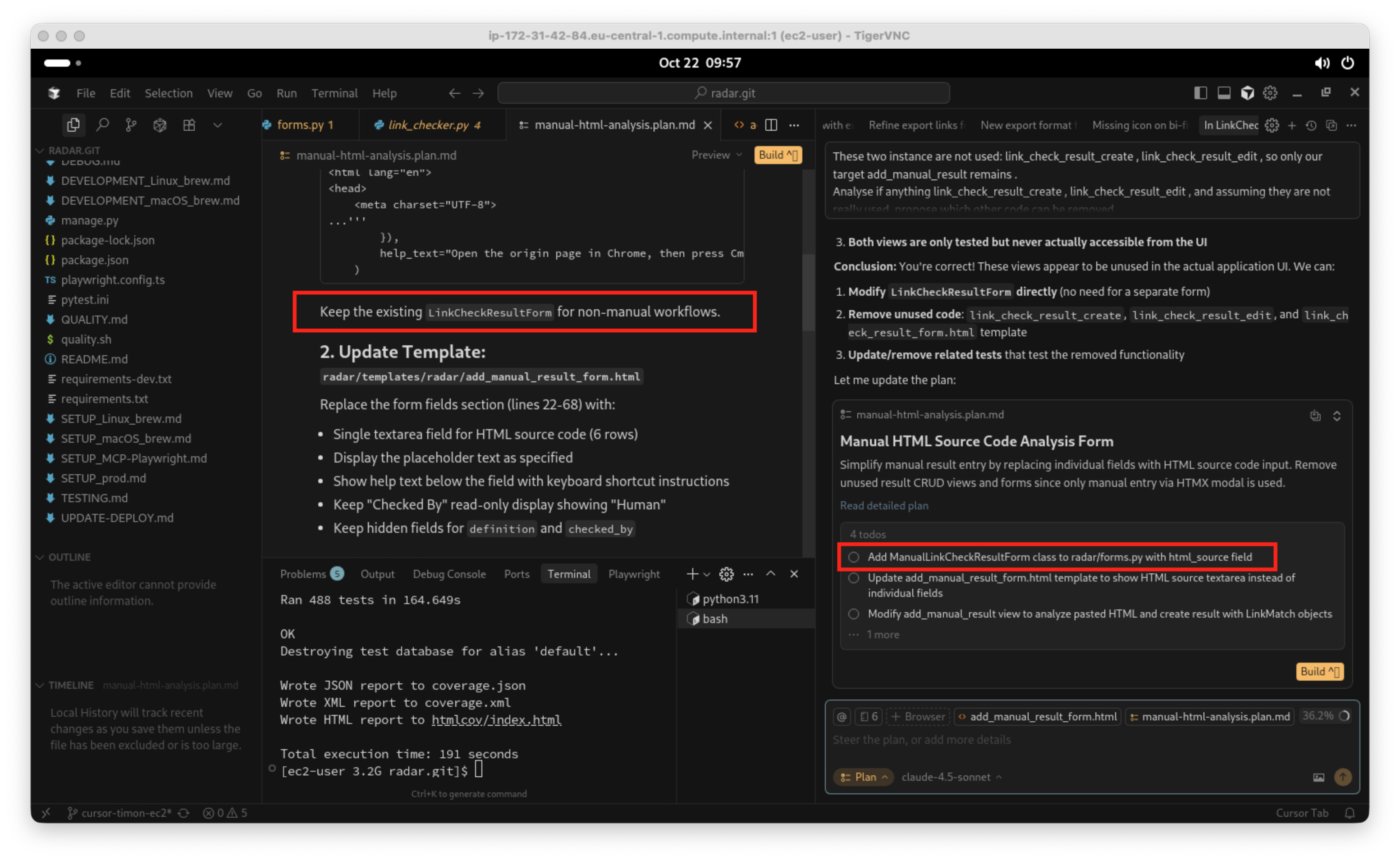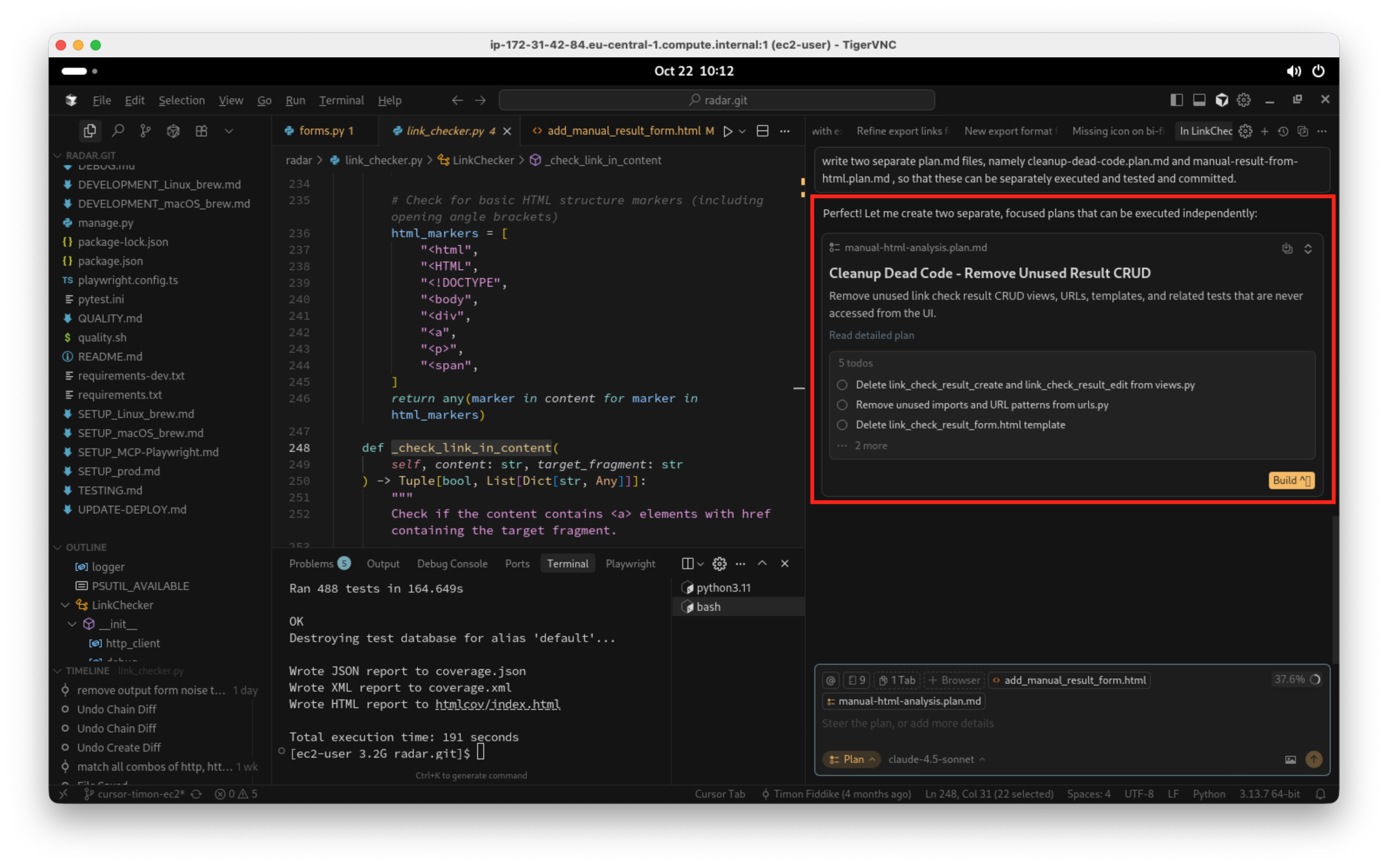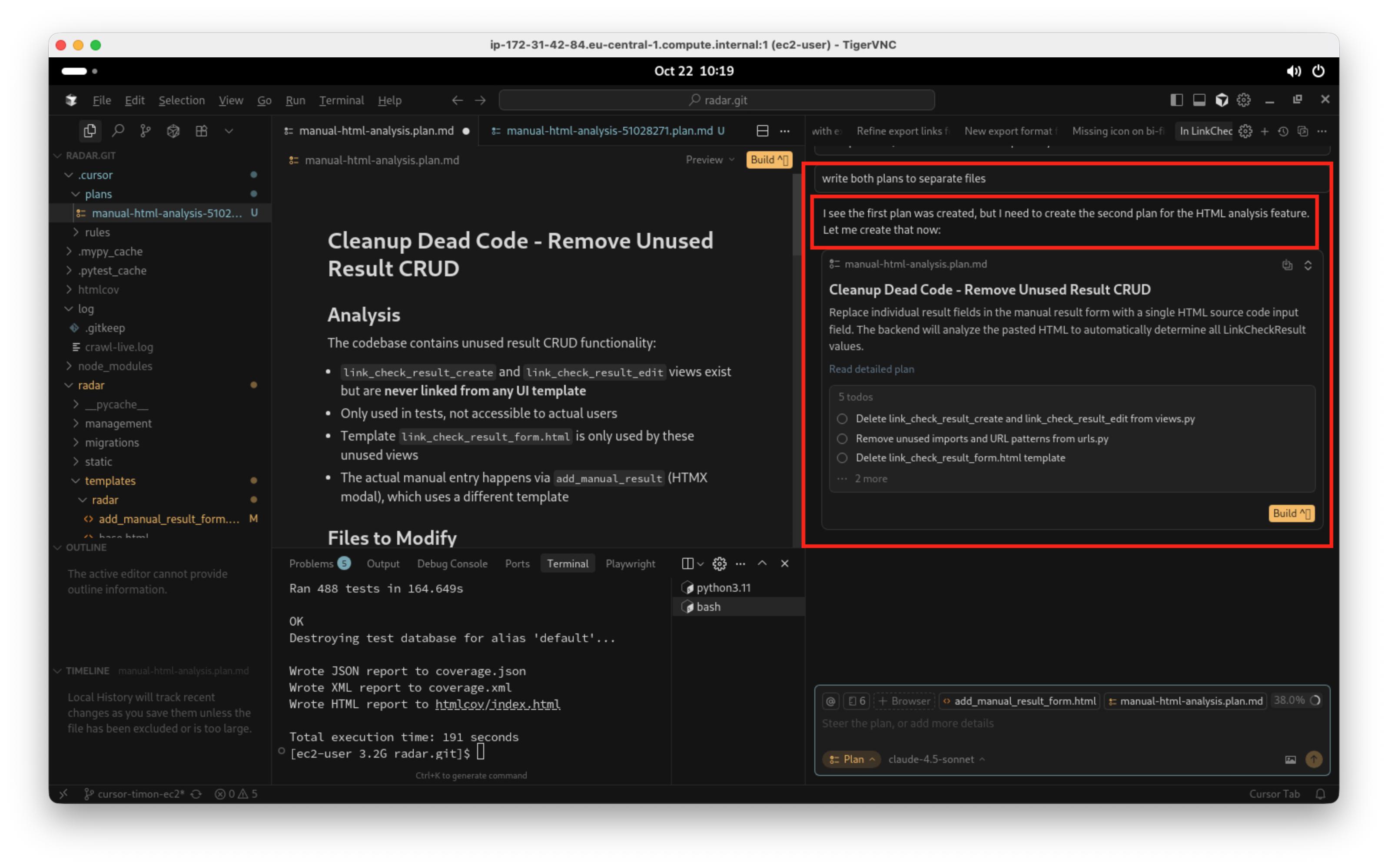 Nun versuche ich das beste aus der Situation zu machen und weise den Agenten an, zwei separate Pläne in Dateien zu schreiben. Ein Plan für das Löschen von nicht mehr benötigtem Code, ein separater Plan für den Einbau des neuen Features. Einfach deswegen, weil ich diese beiden Änderungen separat getestet haben möchte, und ich möchte sie auch separat in GIT committen: